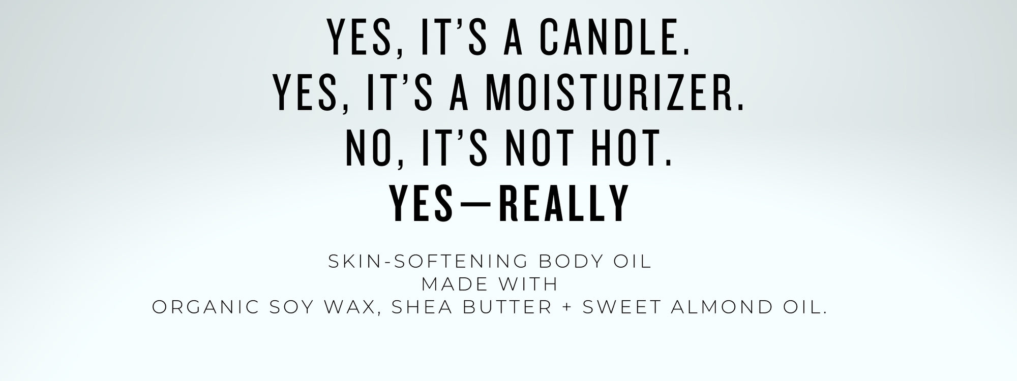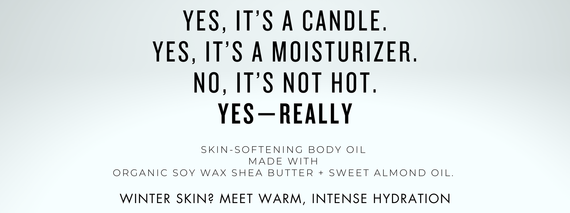 Great question. Soy wax naturally melts at a lower temperature than many traditional candles, and we blend it with shea butter + sweet almond oil, which helps the melted candle feel more like a warm body oil.