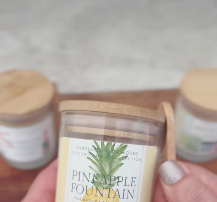 Begin by lighting one of Charleston Soy Works' Lotion Candles. These candles are crafted from organic soy wax, shea butter, and almond oil, melting into a warm, nourishing body lotion for beautifully soft skin. As the gentle glow fills your space, you'll feel the day's stresses melt away.
