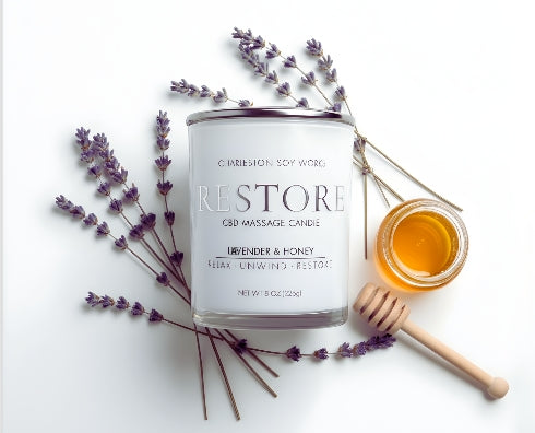 RENEW is a citrus-forward blend that smells bright, juicy, and instantly uplifting. It melts into a warm, lightweight massage oil that absorbs quickly and leaves skin soft, never greasy.